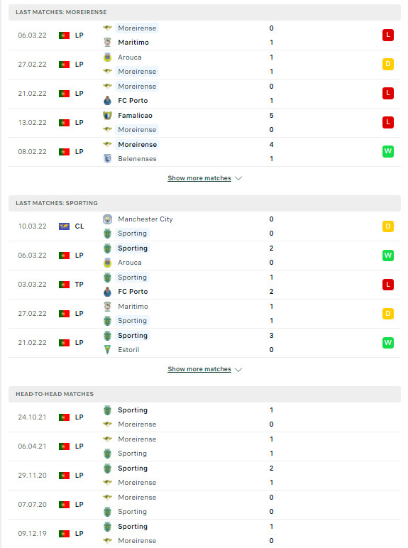 Bằng chứng chính là ngoài thất bại tối thiểu trước Sporting ở lượt đi thì khi đối đầu với Benfica hay Porto, thầy trò HLV Vitor Campelos cũng chỉ phải nhận duy nhất 1 bàn thua ở 2 trận đấu lượt về. Vì vậy, các chuyên gia dự đoán trận đấu sắp tới giữa Moreirense vs Sporting sẽ khó mà nổ tài.